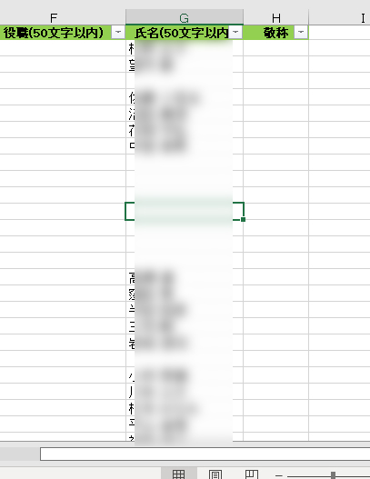 例)氏名と敬称が同じセル+入力方法が揃っていない
